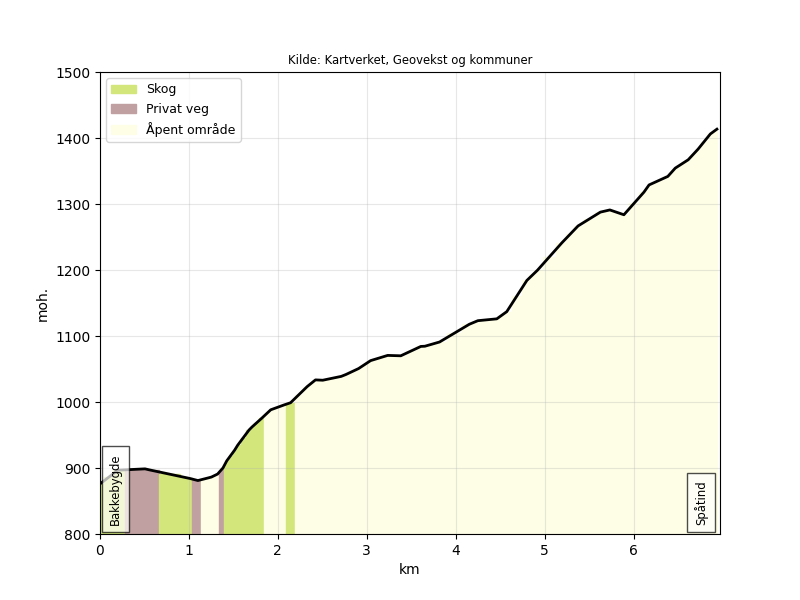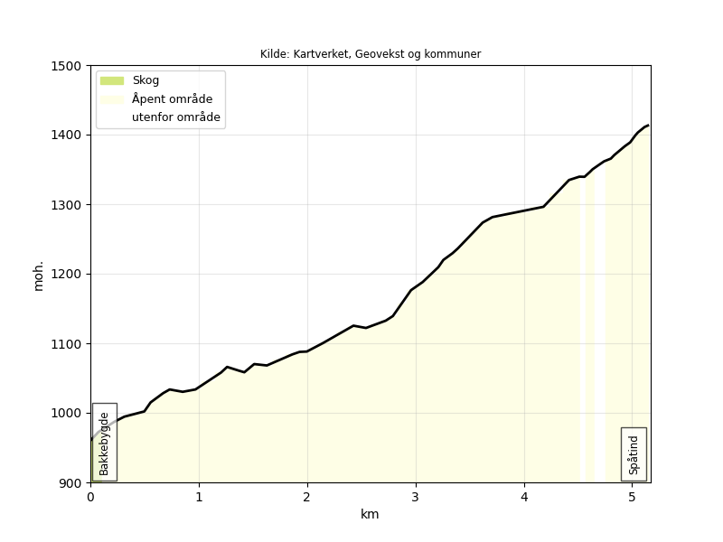 Høydeprofil yngre konkurranseklasser: Fjellsætra - Spåtind: |