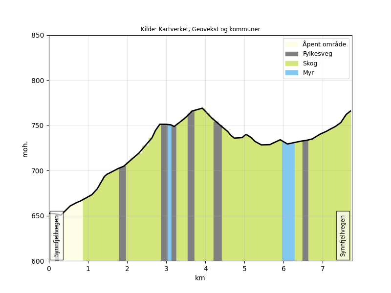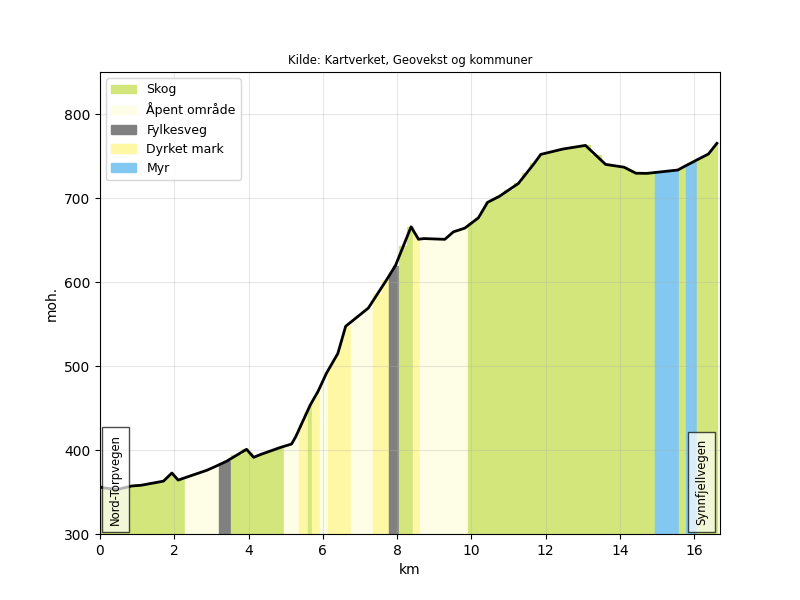Høydeprofil Nordrum (Strøm) - Synnfjellporten : |
